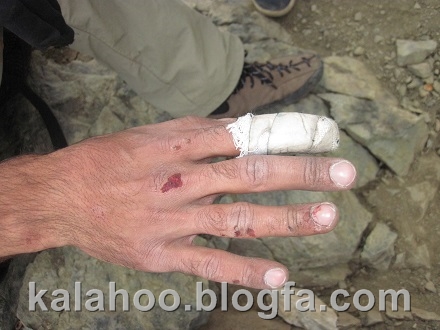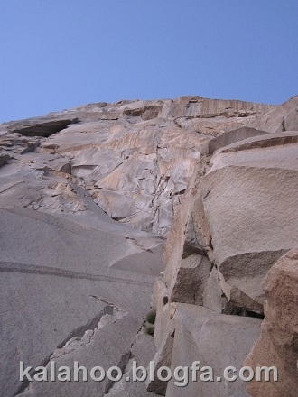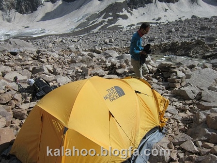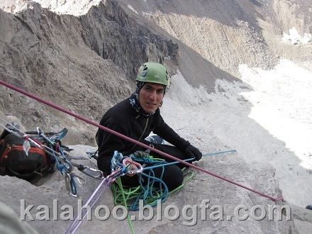 روز پنج شنبه 14 مرداد ساعت چهار صبح به سمت دیواره حرکت می کنیم. بعد از عبور از گل سنگها ساعت شش صبح پای مسیر همدانیها هستیم و مهدی و همایون هم که بعد از ما بالا آمده بودند به سمت مسیر هاری روست می روند.