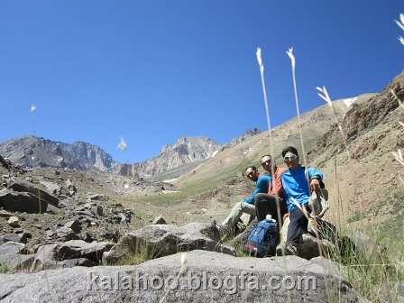 پس از کمی استراحت در کنار سنگ سماور به مسیر ادامه می دهیم و تیم چهار نفره ما ساعت 13 از گرده خارج می شود. استراحت می کنیم و غذایی می خوریم و به سمت قله می رویم.