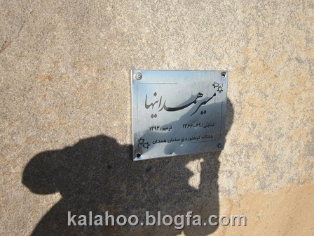 به کارگاه که می رسیم تابلوی یادبود ترمیم مسیر همدانیها که سال 93 نصب شده است به چشم می خورد. به گفته محمد نوری، دو طول اول مسیر همدانیها یادگار مرحوم فریدون اسماعیل زاده می باشد.